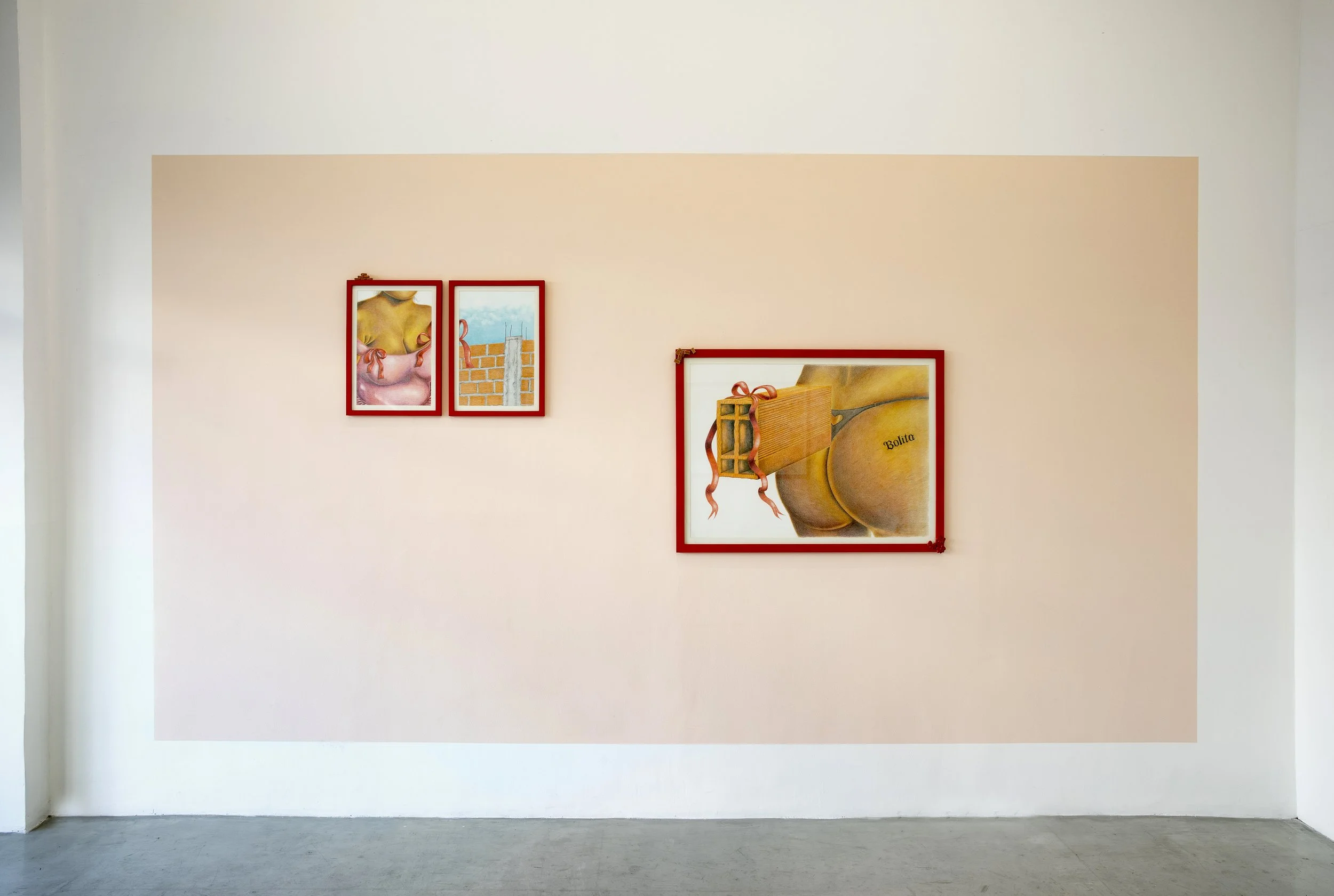 In Flor's drawings, the exhibitionism of the body-house reveals a space for vulnerability: not as a gesture of helplessness in the face of violence, but, on the contrary, as a form of resistance. Her exuberant forms—perhaps excessive for certain dominant modes of expression—free of retouching or filters, exhibit a break with what Rey Chow calls coercive mimesis, that mechanism that structures reality for racialized subjects by demanding an impossible performance of authenticity: “If it is already difficult for an ethnic person to perfectly imitate the white man, it is even more difficult to imitate oneself,” writes Chow. Faced with this demand, Flor exhibits the particularities of her way of being in the world and builds, with ribbons and bricks, a dollhouse tailored to her own subjectivity.